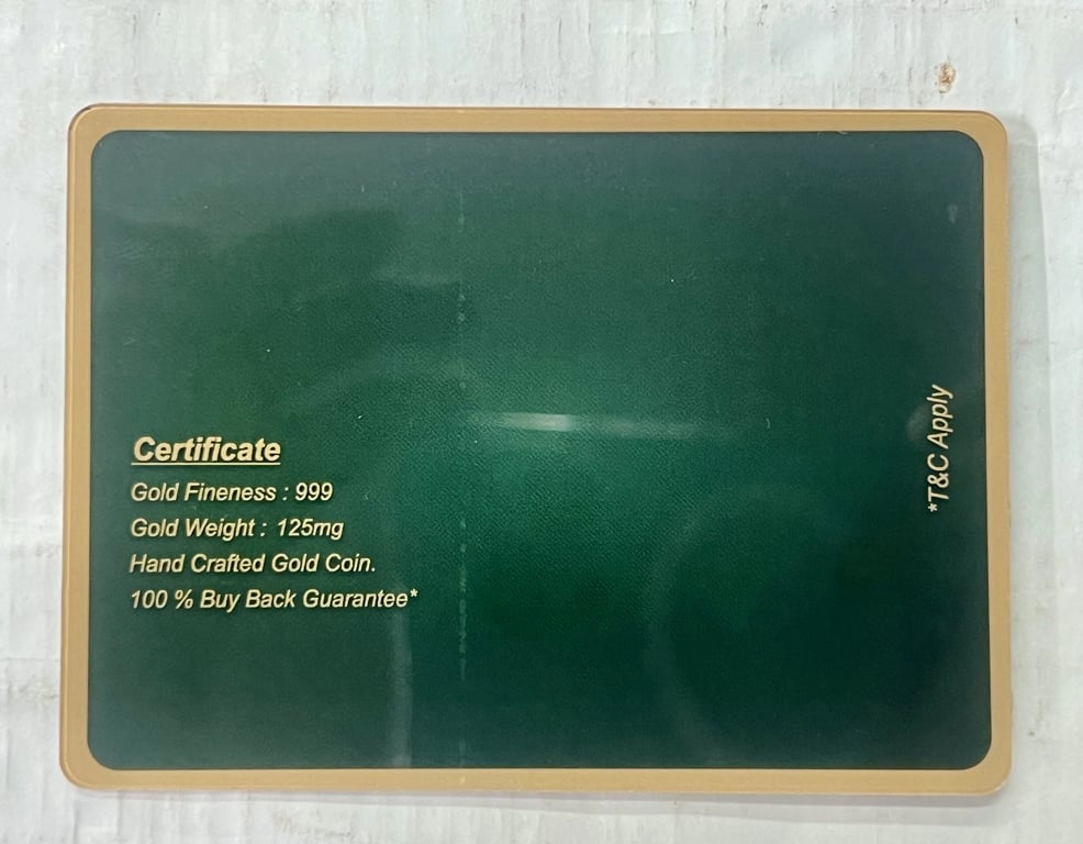 • 125 Mili Gram Gold Coin purity 999